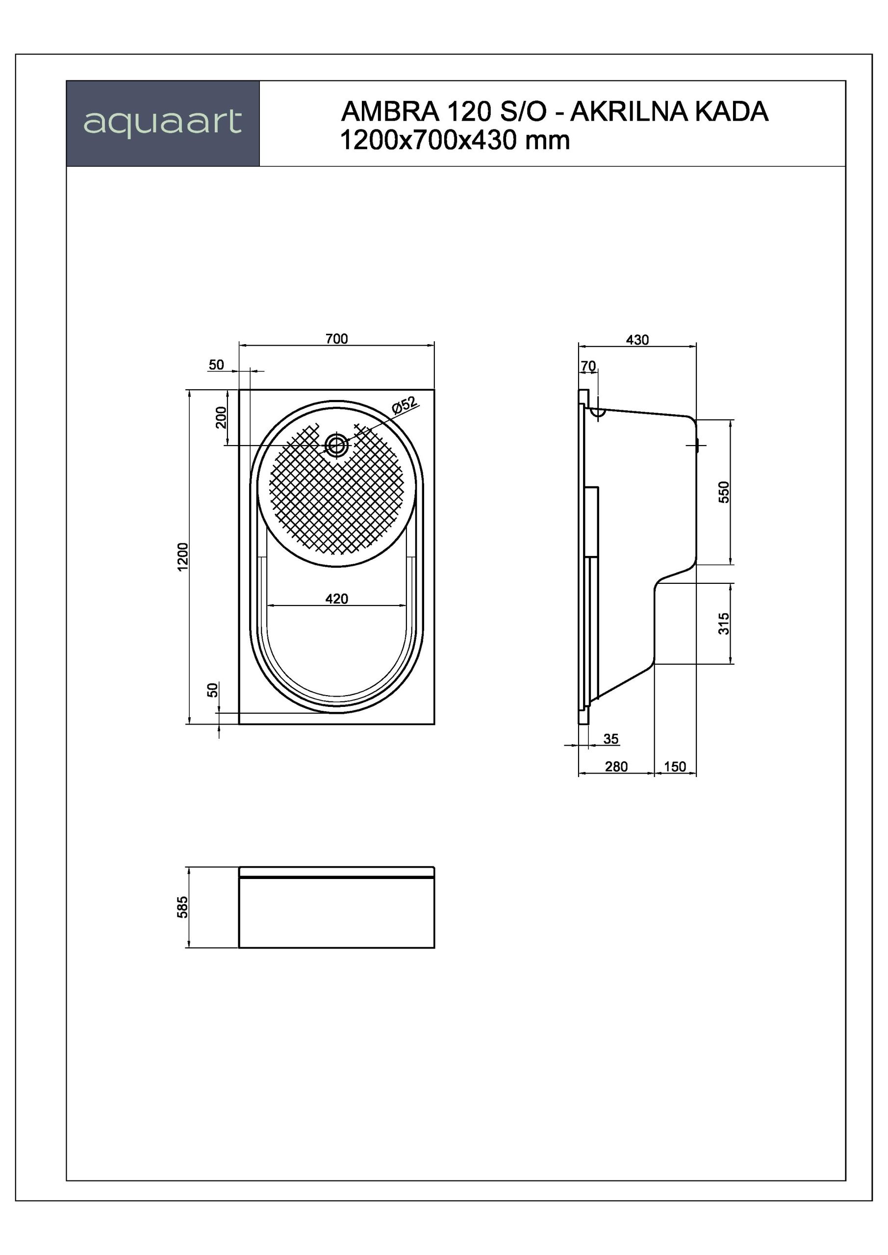AMBRA 120 S/O KUPAONSKA KADA 1200×700 mm