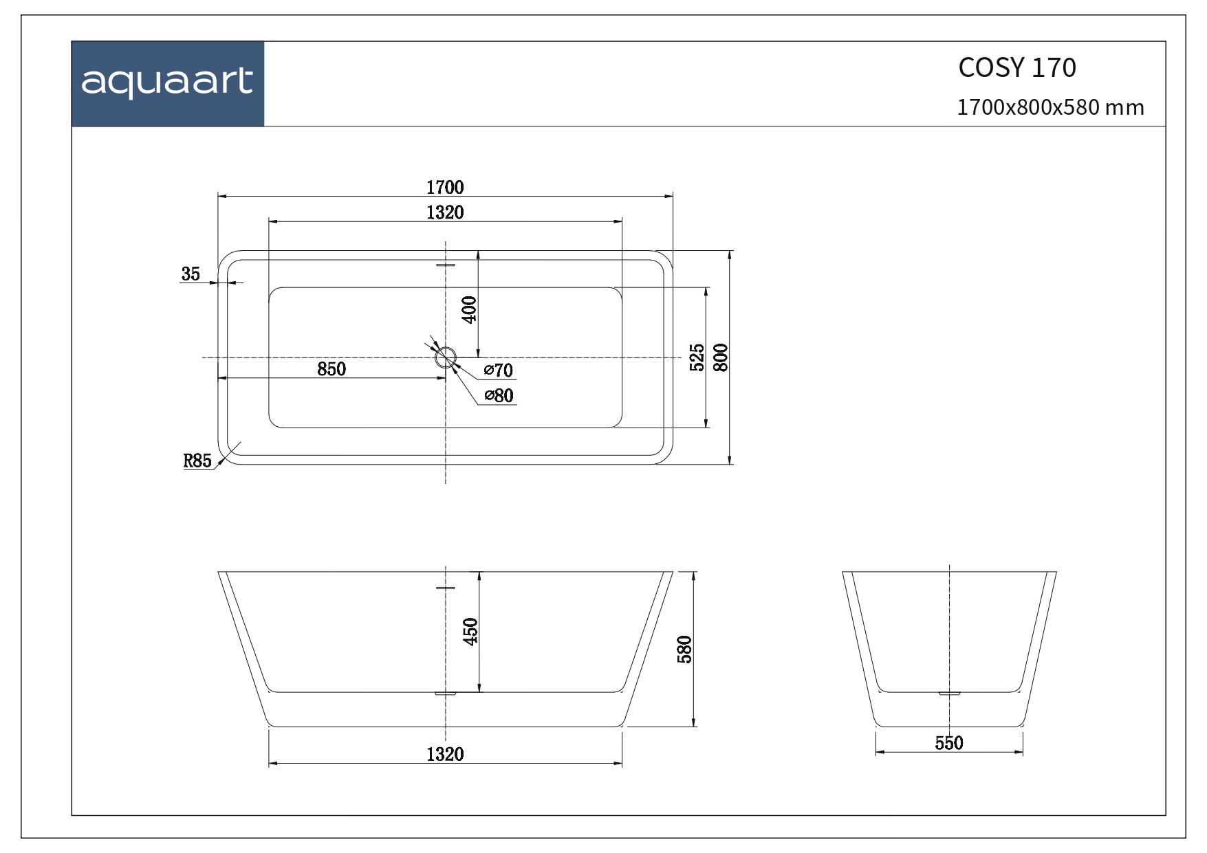 COSY 170 SAMOSTOJEĆA KUPAONSKA KADA 1700X800X580 MM