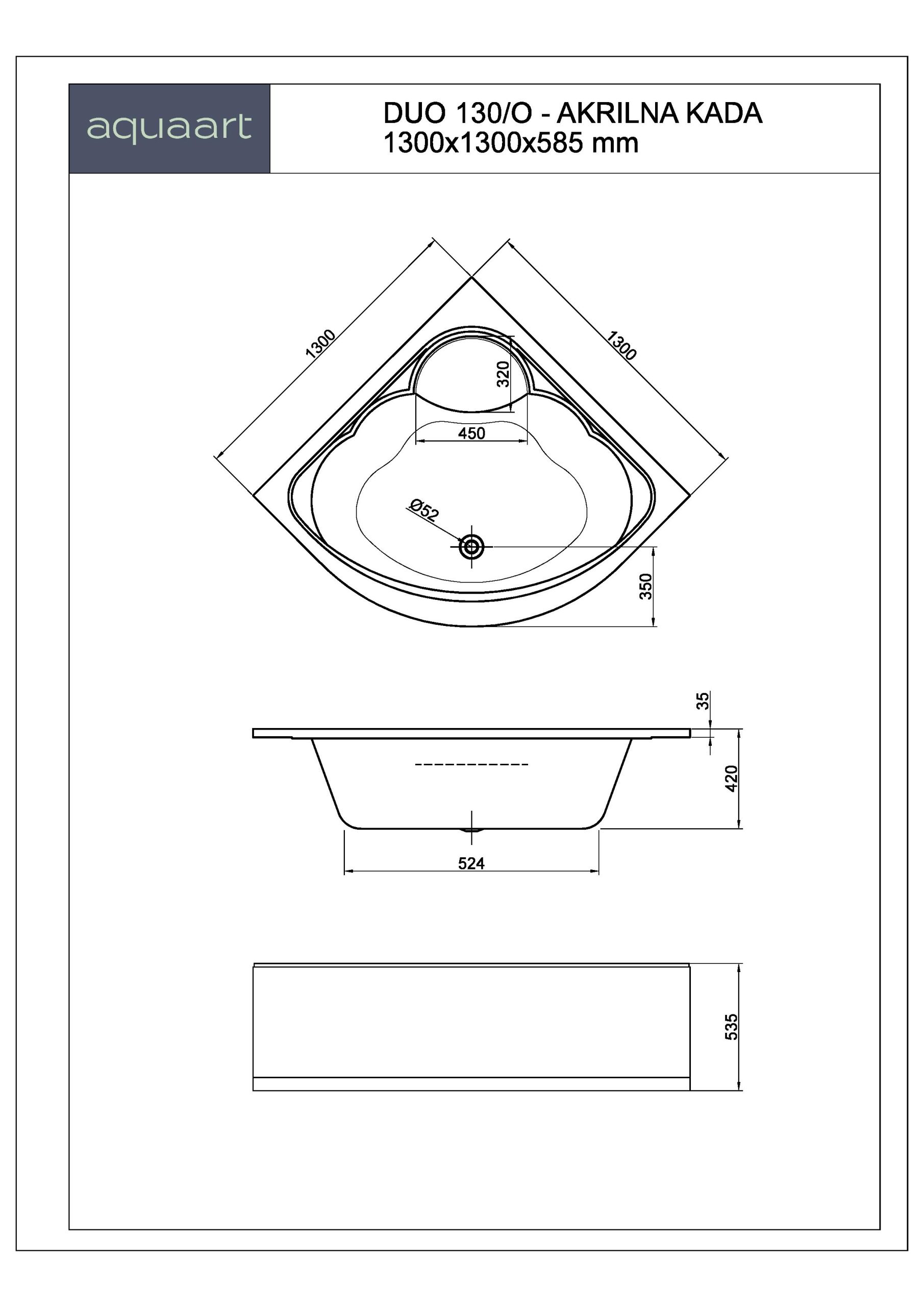 DUO 130/O KUPAONSKA KADA 1300×1300 mm