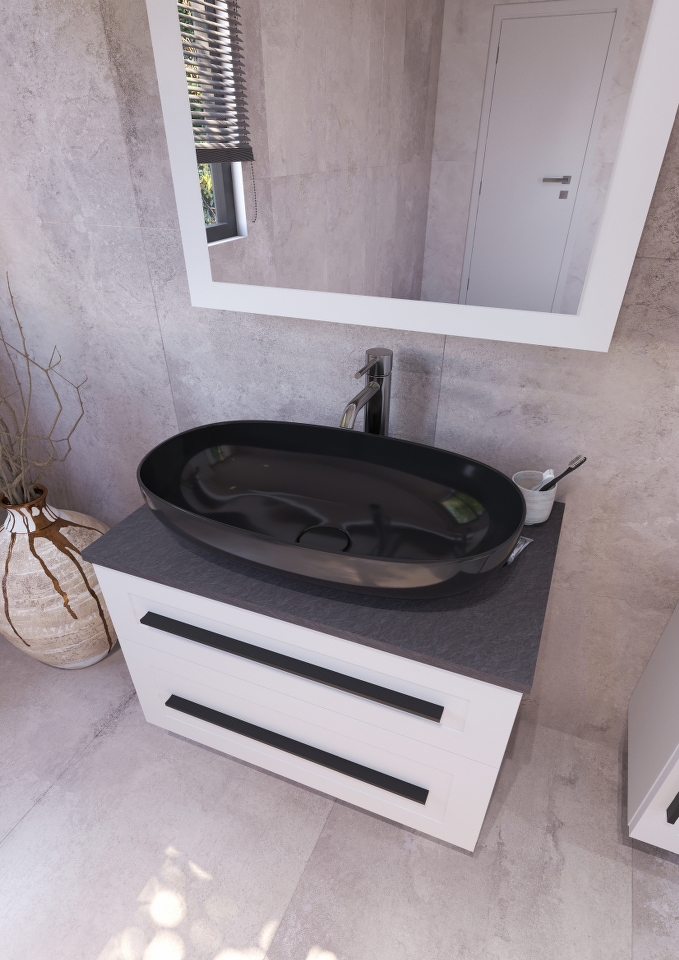 ETERNITY 70 DONJI KUPAONSKI ORMARIĆ BIJELI MAT CRNA RUČKICA S PLOČOM SCIVARO ŠKRILJEVAC