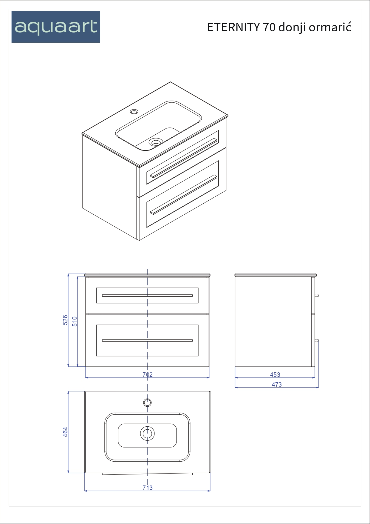 ETERNITY 70 DONJI KUPAONSKI ORMARIĆ GRAFIT SUPERMAT SREBRNA RUČKICA