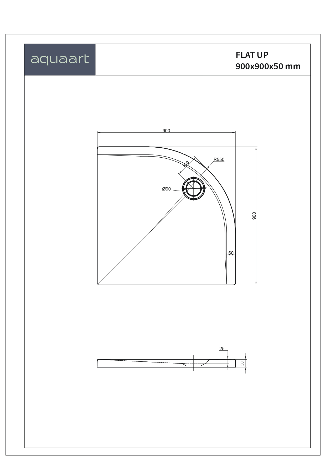 FLAT UP 90 PK TUŠ KADA 900x900x50 mm