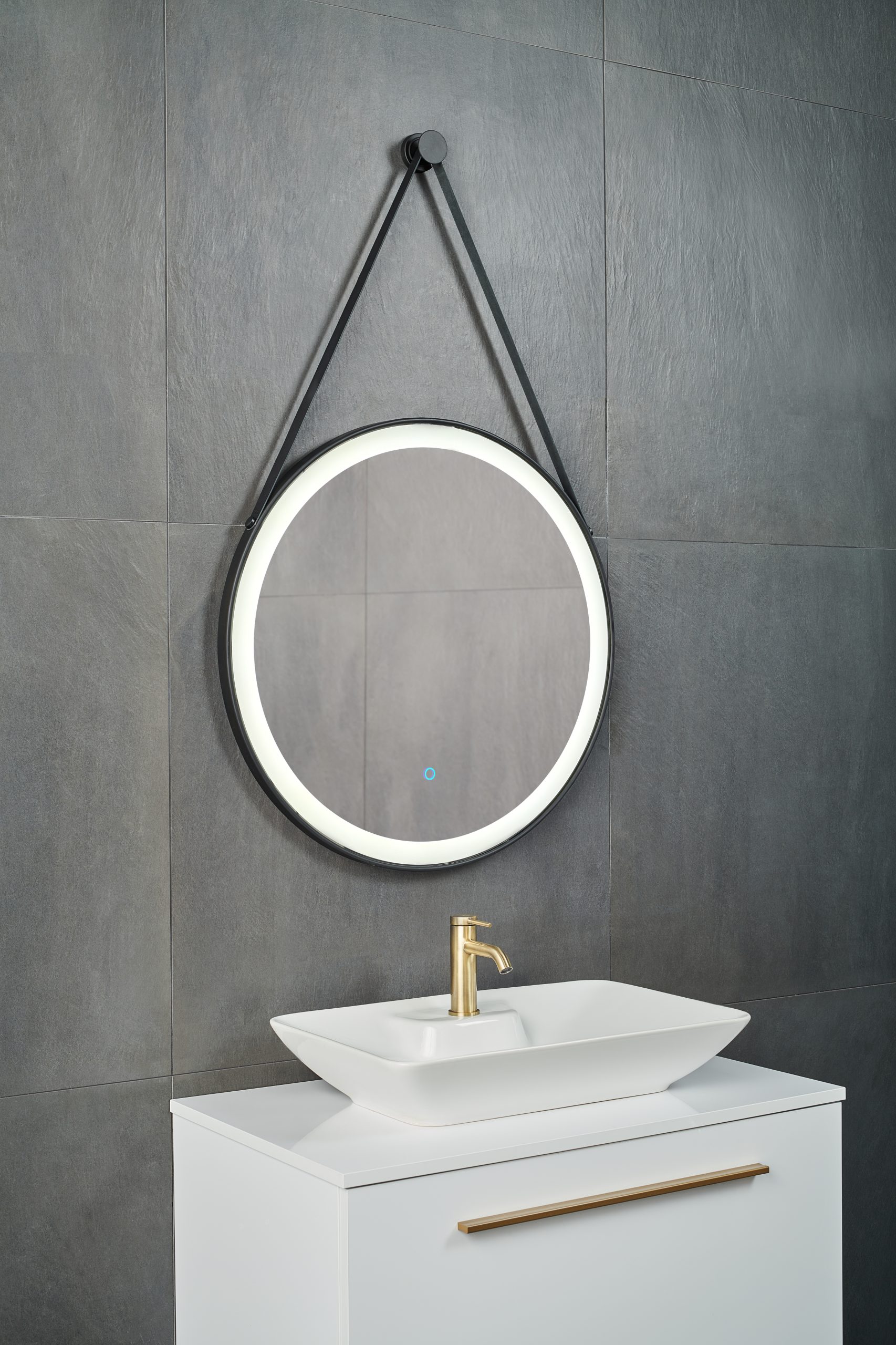 Okruglo LED ogledalo debljine 5 mm sa srebrnim premazom te crnim aluminijskim okvirom. Posebnost ovog ogledala je u tome što visi na crnom ovjesu te je apsolutni statement detalj u svakoj kupaonici, a uz to je i funkcionalan zahvaljujući rasvjeti. Senzor na dodir. LED rasvjeta 5000K, 700 lm.