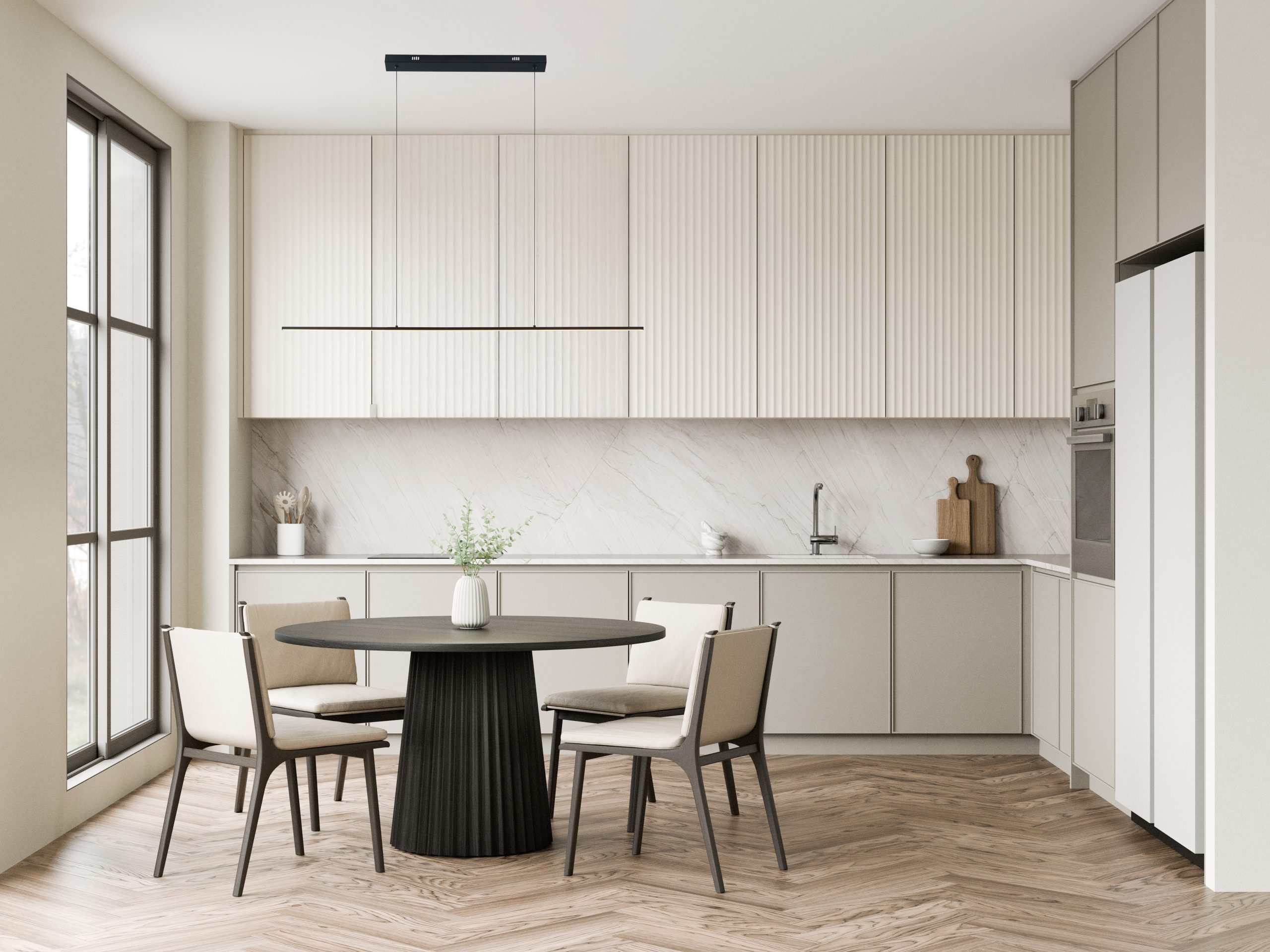 Sirius viseća svjetiljka odiše minimalističkom elegancijom i pročišćenim linearnim oblikom. Njena tanka silueta diskretno se uklapa u prostor, dok daljinski upravljač omogućuje jednostavno podešavanje temperature boje (3000–6000 K) i jačine svjetla. Dimabilna i energetski učinkovita, sa snagom od 20 W i svjetlosnim tokom od 1128 lm, idealna je za osvjetljavanje blagovaonskog stola, kuhinjskog otoka ili radne zone.