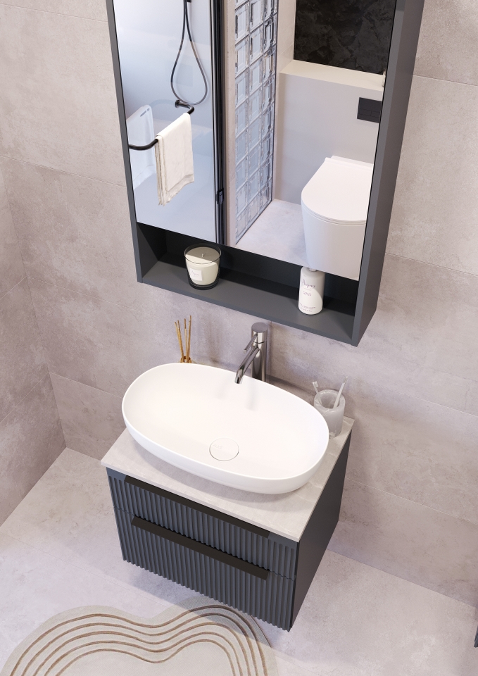 MIRIAD 60 DONJI KUPAONSKI ORMARIĆ GRAFIT SUPERMAT S PLOČOM CANDELA MRAMOR