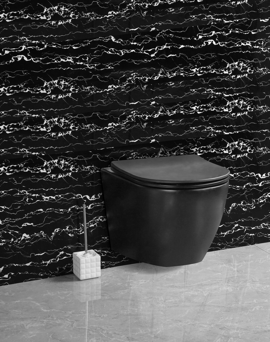 Mondo black viseća školjka s daskom u modernom rimless dizajnu dimenzija 490x370x370 mm, izrađena od visokokvalitetne keramike u crnoj boji, savršen je dodatak svakom suvremenom kupaonskom prostoru. Ova elegantna crna školjka ne samo da donosi sofisticirani izgled, već i pruža maksimalnu higijenu zahvaljujući inovativnoj rimless tehnologiji koja omogućava lakše čišćenje i sprječava nakupljanje bakterija. Njezina izdržljivost i otporna površina osiguravaju dugotrajnu upotrebu, dok viseći dizajn omogućava jednostavno održavanje poda. Unesite stil i funkcionalnost u svoju kupaonicu s Mondo black visećom školjkom.