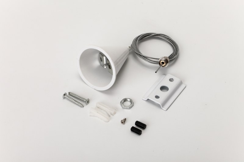 Ovjesni komplet za tračne vodilice u bijeloj boji.