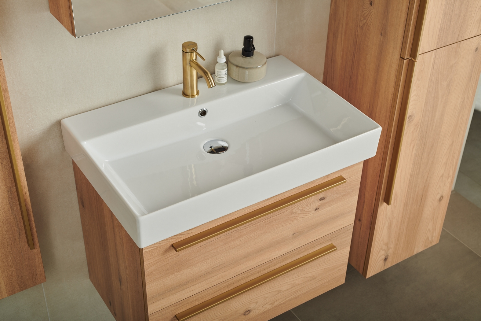 SHARP 70 DONJI KUPAONSKI ORMARIĆ HRAST NATURAL ZLATNA RUČKICA