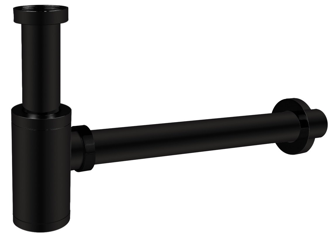 Sifon za umivaonik od mesinga, crne boje. Cijev promjera 32 mm. Okomita cijev duljine 120 mm, vodoravna cijev duljine 300 mm. Ukrasni poklopac od mesinga u crnoj boji. Pogodan za ugradnju na sve standardne umivaonike.