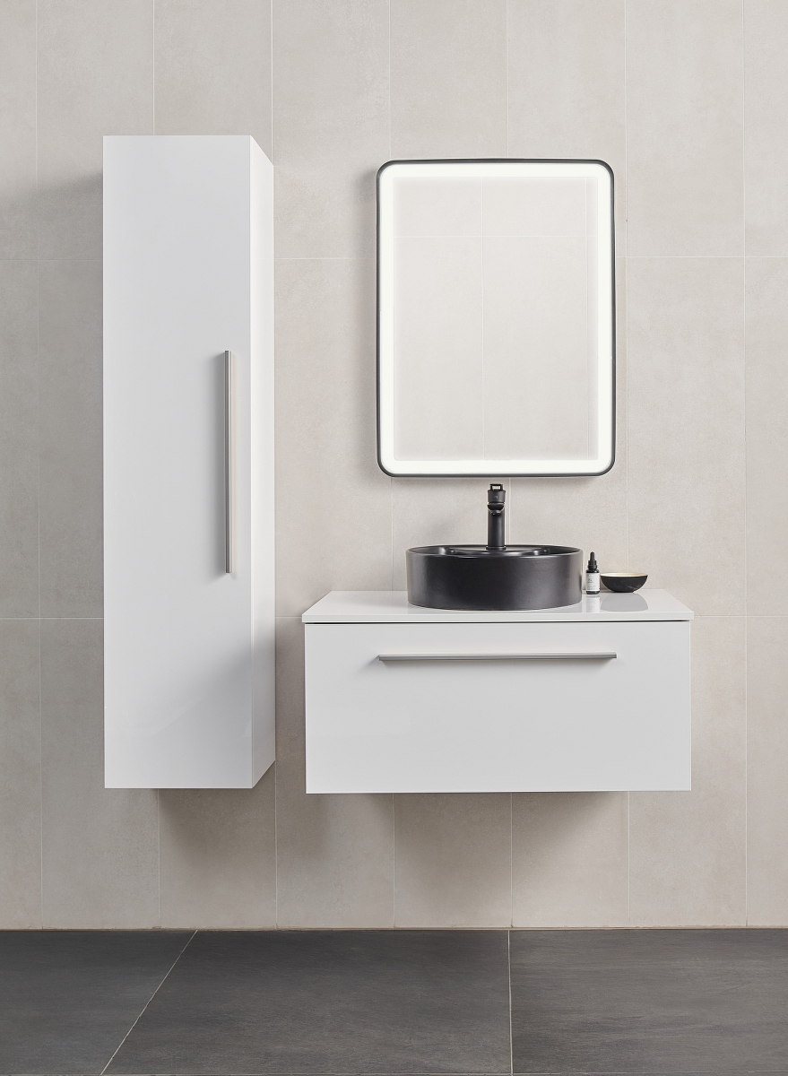 SMART 150 BOČNI KUPAONSKI ORMARIĆ BIJELI SJAJ SREBRNA RUČKICA