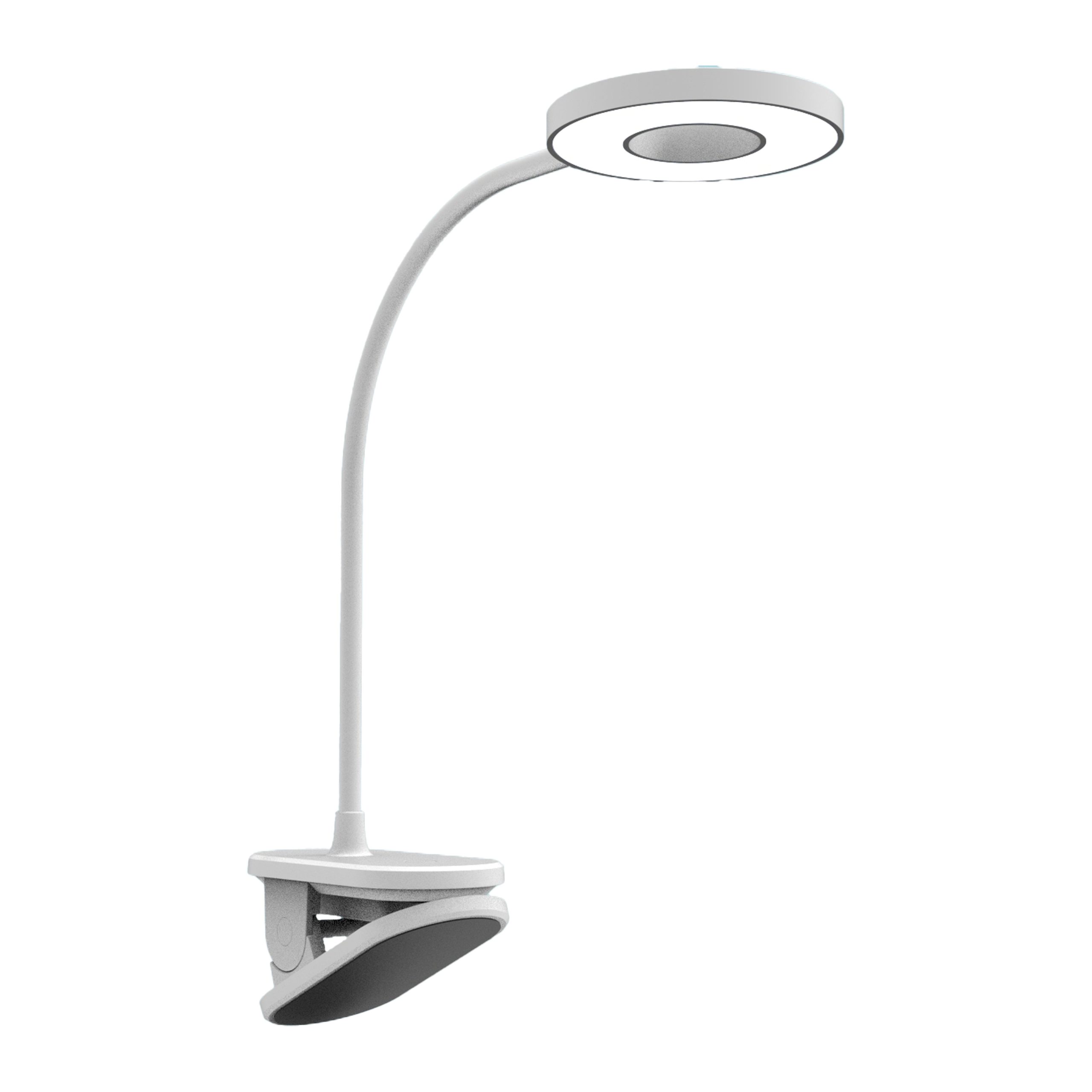 LED stolna svjetiljka (5 W, 300 lm, 5000K) pruža neutralno bijelo svjetlo. Punjiva putem priloženog USB kabela (5V DC), s ugrađenom litijskom baterijom od 1200 mAh. Paljenje na dodir i mogućnost podešavanja jačine svjetla. Bijela izvedba, pogodna za radne prostore, noćne ormariće i svakodnevnu upotrebu bez stalnog priključka.