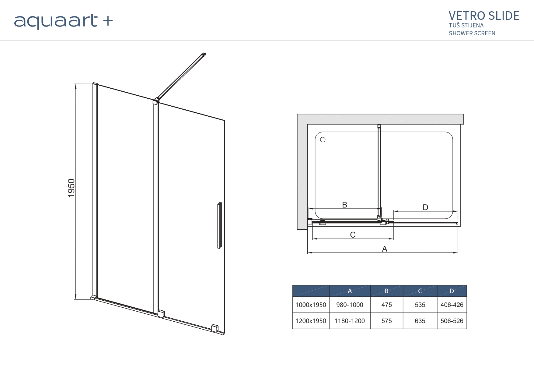 TUŠ STAKLO ZA VETRO SLIDE BLACK 100 100X195 cm