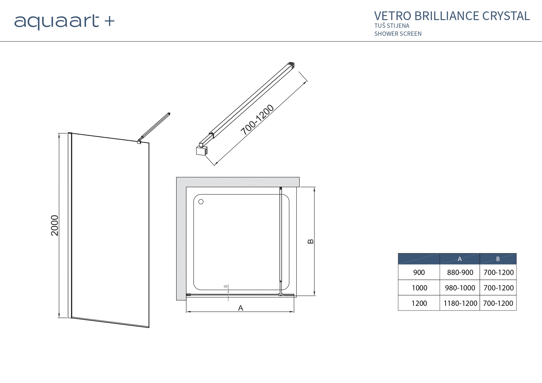 VETRO BRILLIANCE CRYSTAL 90 BLACK TUŠ STIJENA 90x200cm
