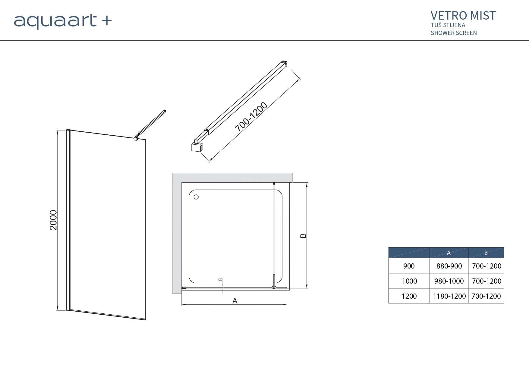 VETRO MIST 120F CHROME TUŠ STIJENA 120×200 cm