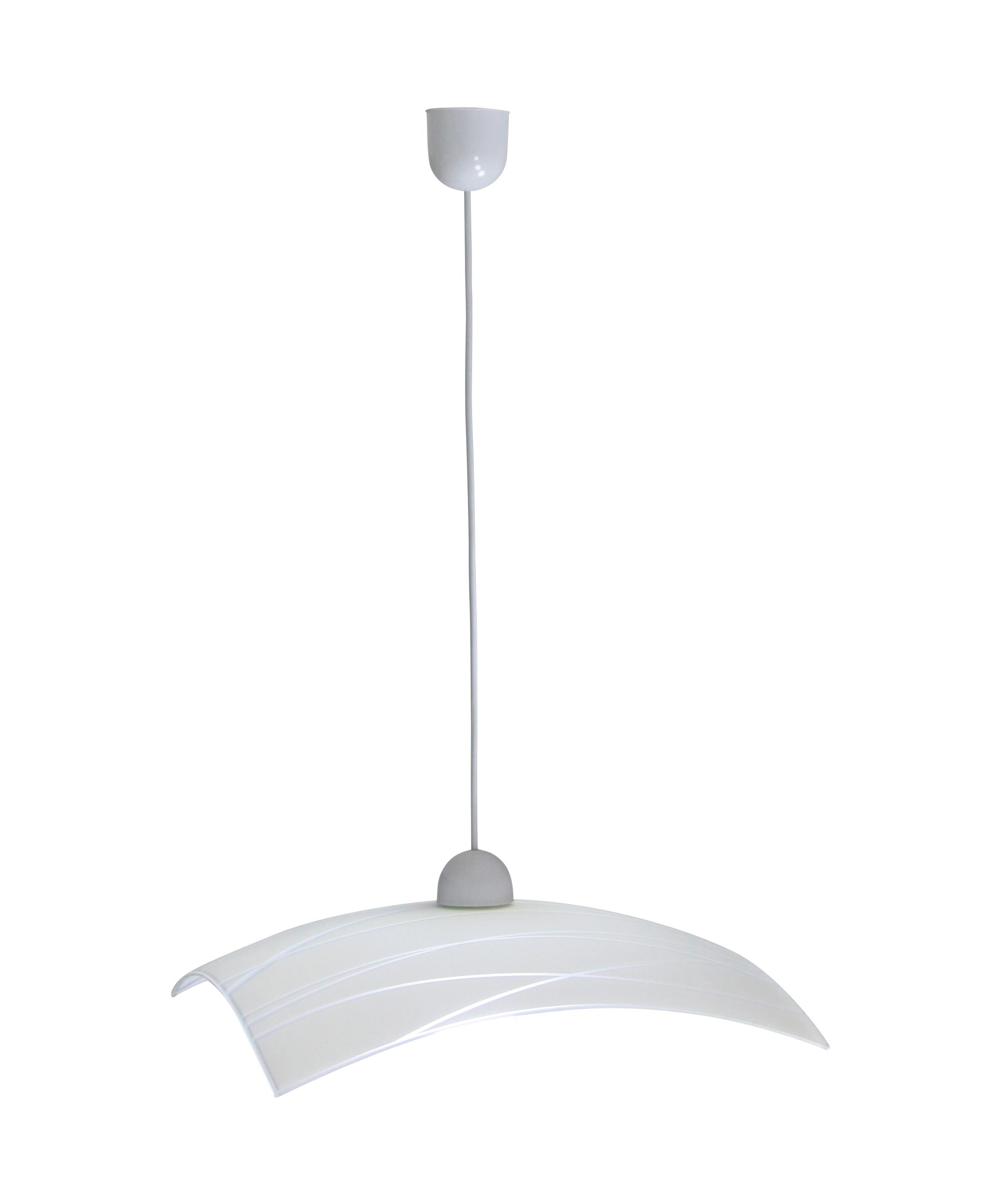 Staklena visilica jednostavnog dizajna u bijeloj boji s bijelim plastičnim ovjesom.