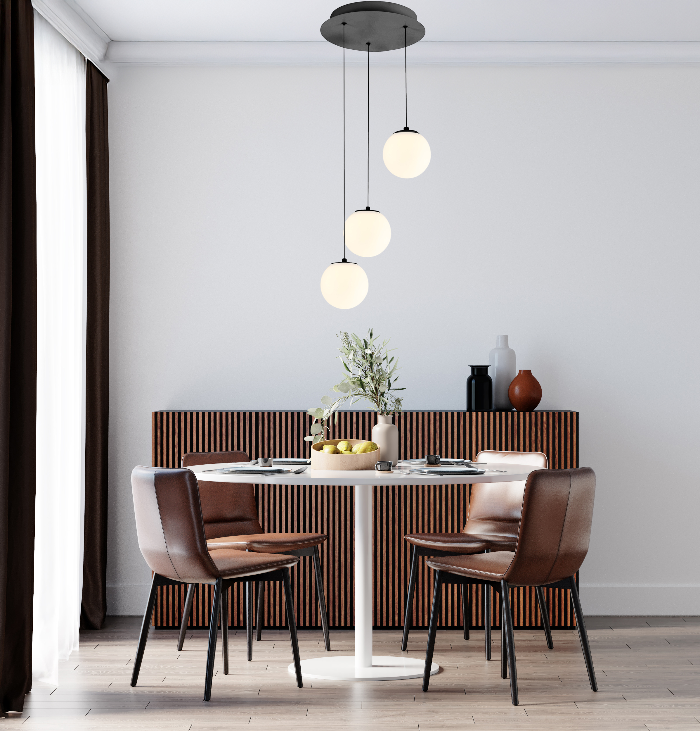 Tri kugle, tri razine, jedna priča svjetla. Ova kompozicija opalnih staklenih sjenila lebdi iz kružne baze, stvarajući dinamičan i skladan vizualni dojam. Idealan izbor za ulazne prostore, stubišta ili centralni dio dnevne sobe. Žarulje nisu uključene.